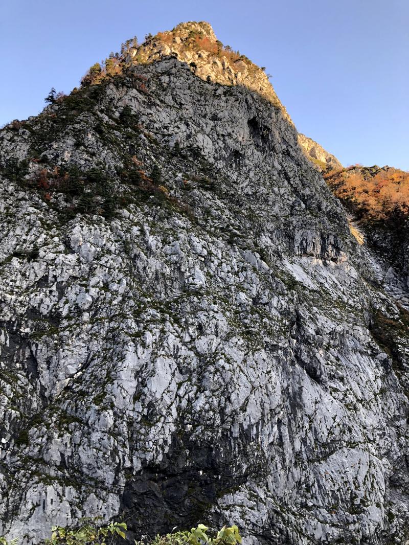 西壁からしょんぼりと下山し、ヒスイ峡展望台から壮大な南壁を見上げた。