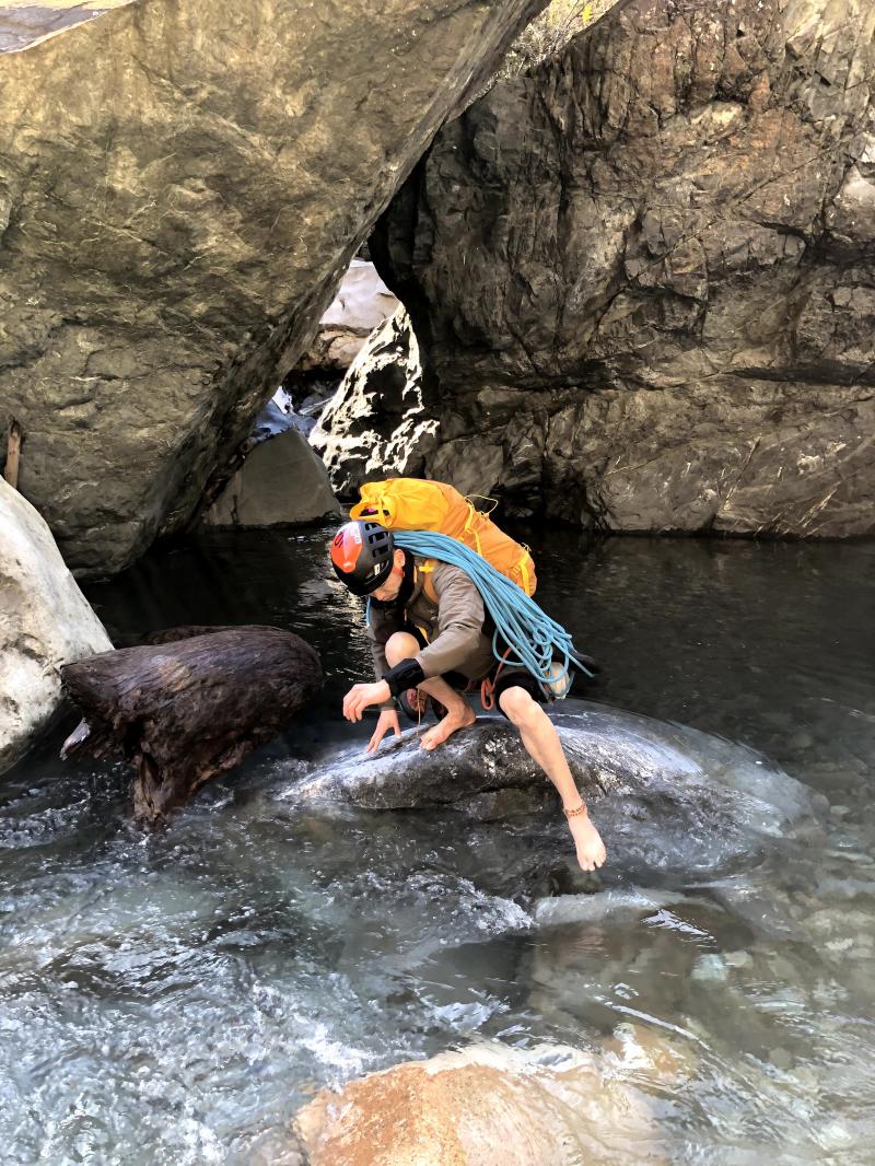 3〜4ピッチほどを歩いて登ると、大岩に着いた。