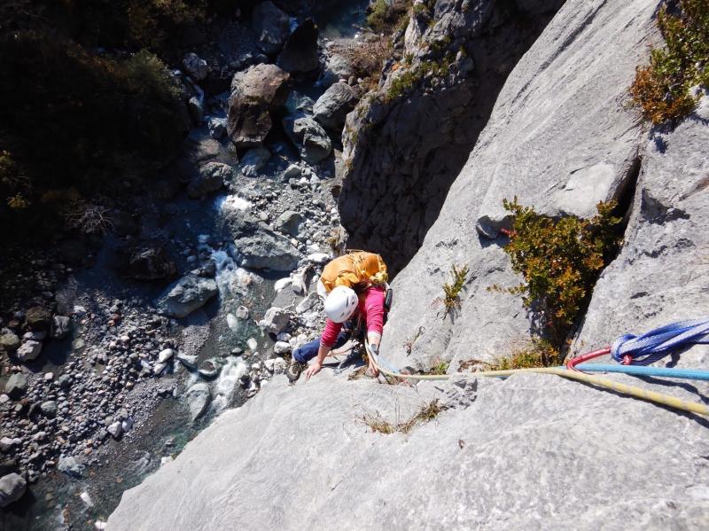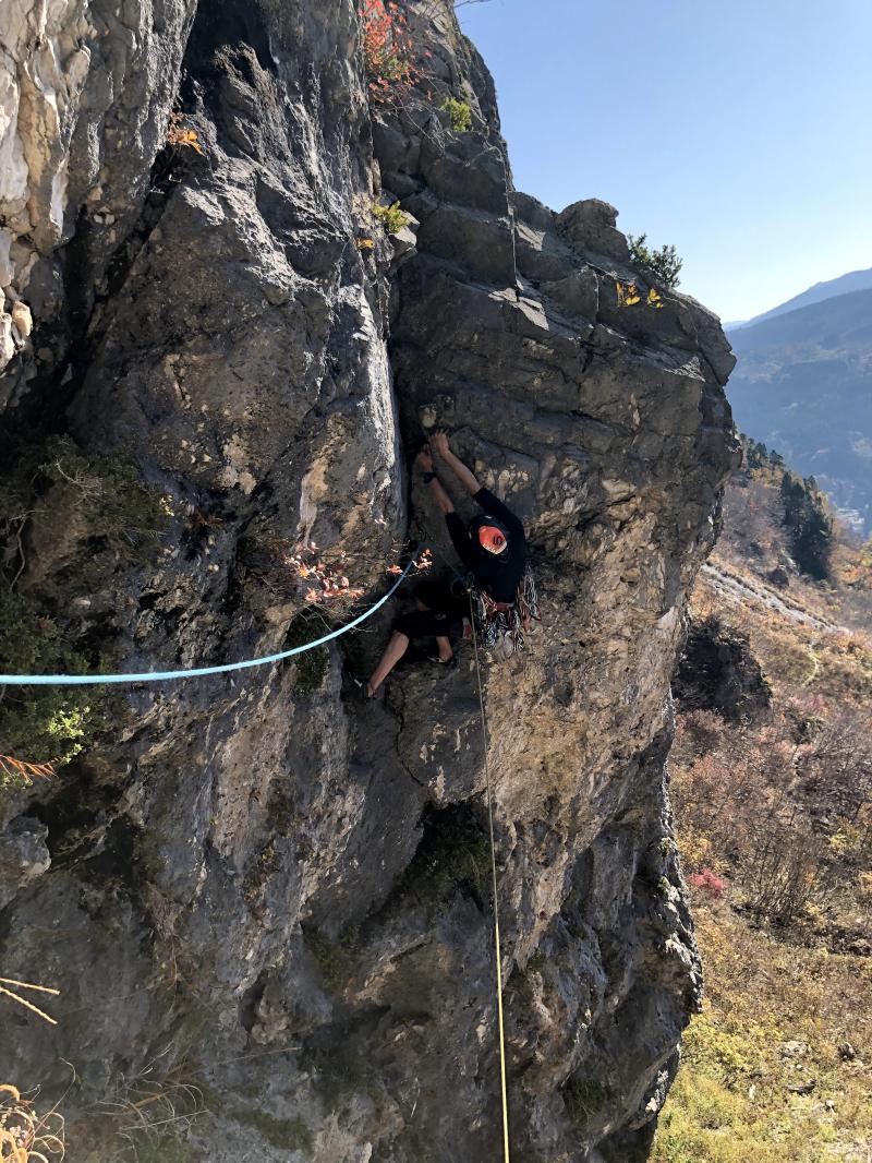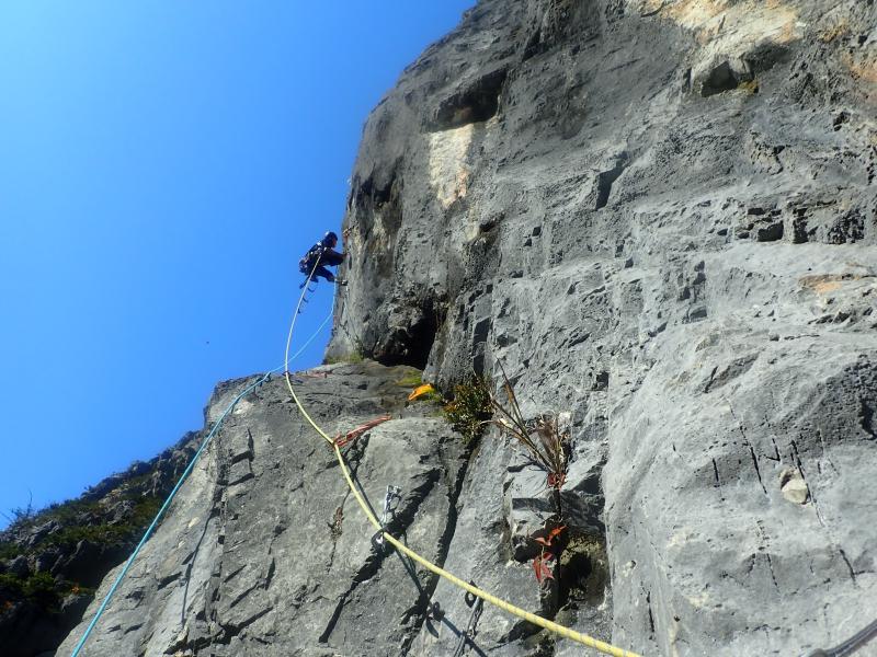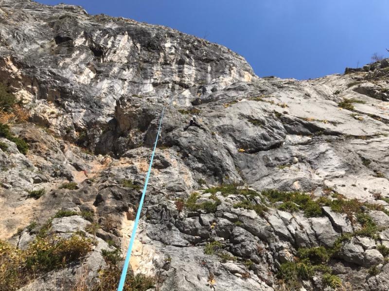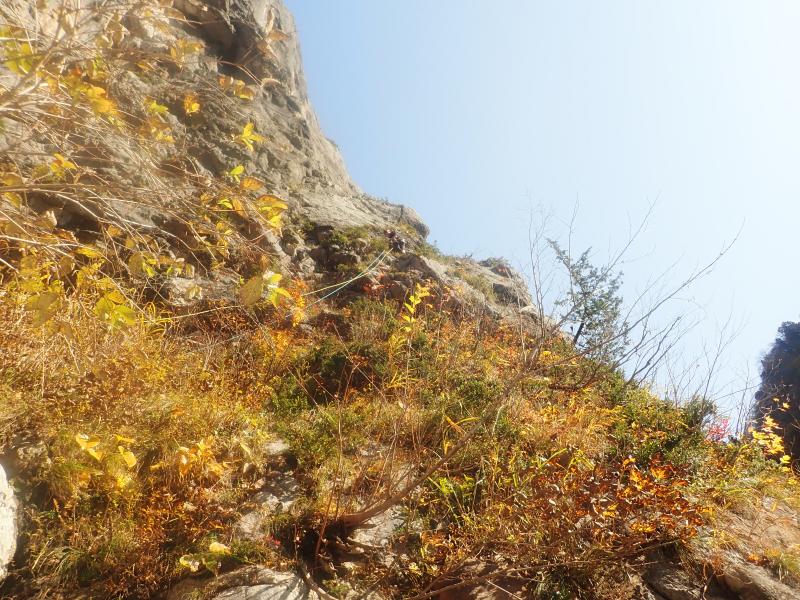 その後は松の木テラスまで一気にロープを伸ばし、カンテへ移る。
