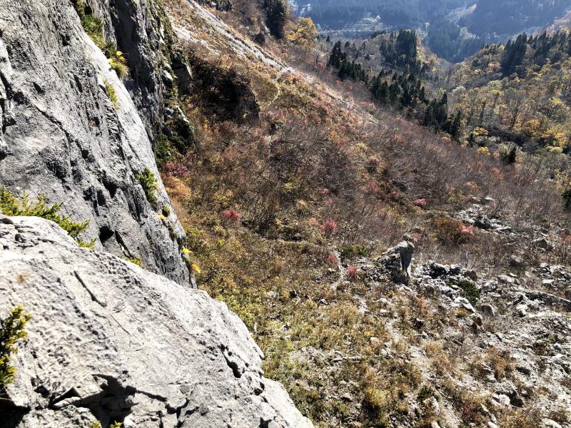 南壁の下降は要所にテープが貼ってあり、踏み跡を辿って下山できた。