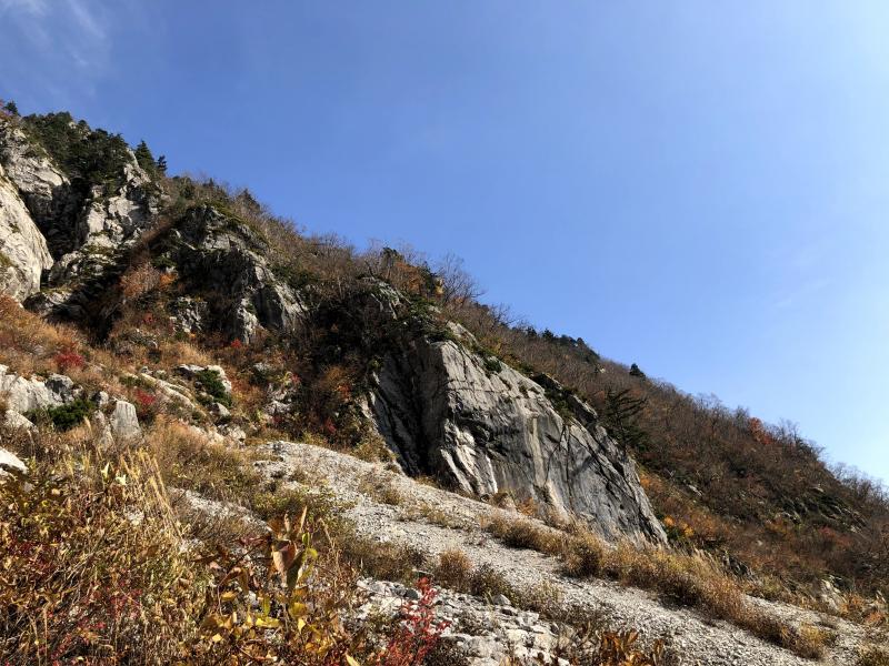 パートナーは夏の間沢登りばかり行っていたようで、乾いた岩が怖いと言い出す。