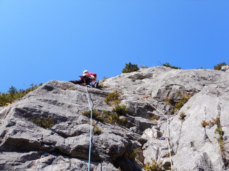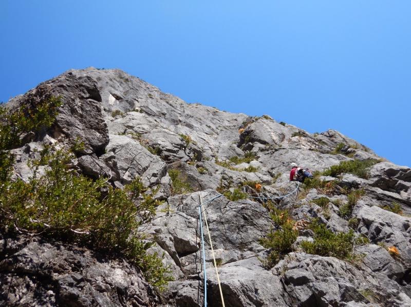 とりあえず登れるところまで、ということで合ってるのかよく分からない1ピッチ目を登った。