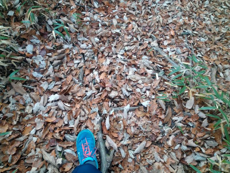 - 道標は豊富。広葉樹区間は落ち葉で浮き石や根っこなど分かりづらく滑りやすくなっているので注意。