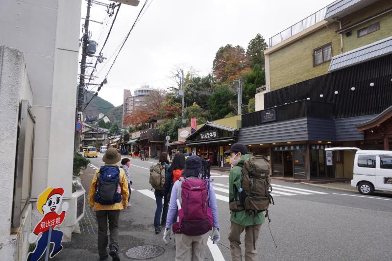 集合時間9:30の有馬はまだまだ殆どの店がシャッターが閉まった状態か、開店準備をしている様子。