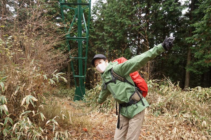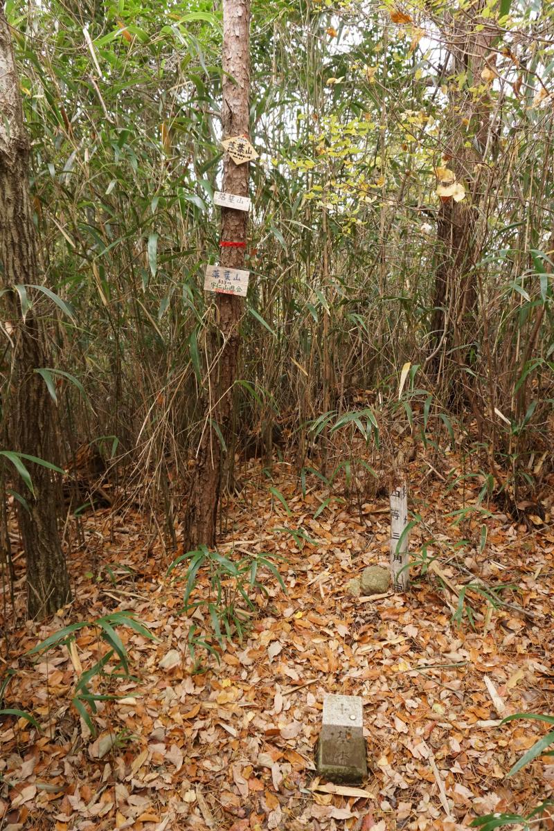 妙見寺からすぐに一座目の落葉山に到着。ルートの脇にありお喋りしているとおそらく見逃してしまいそうなひっそりとした場所に三角点があります。