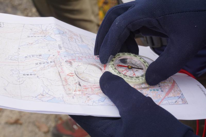 まずは地図をしつかり見ながら、コンパス片手に歩き始めます。