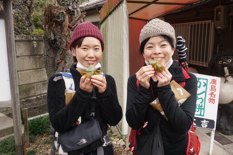 途中立ち寄り処の鹿島神社では、名物のかしわ餅を頂き(神社で柏手を打つ、ことから名物になったんだとか)ランチは公園のベンチでゆっくり頂きました。