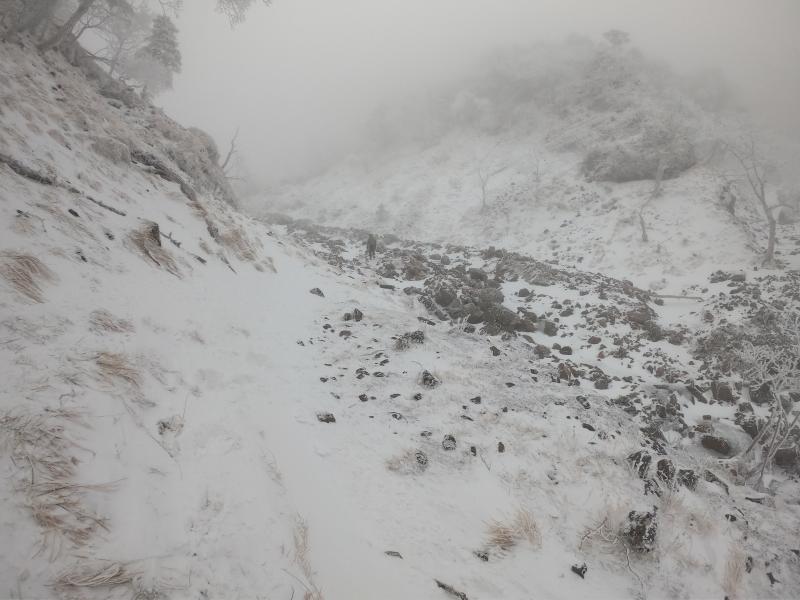 その日の前日までは、アプローチの橋や、山頂も土が見えるほどの積雪量でしたが、