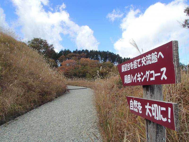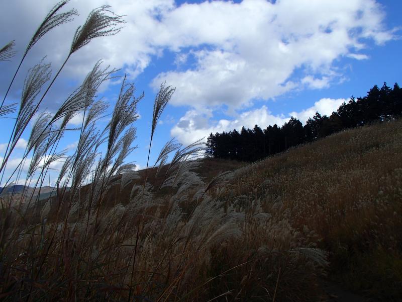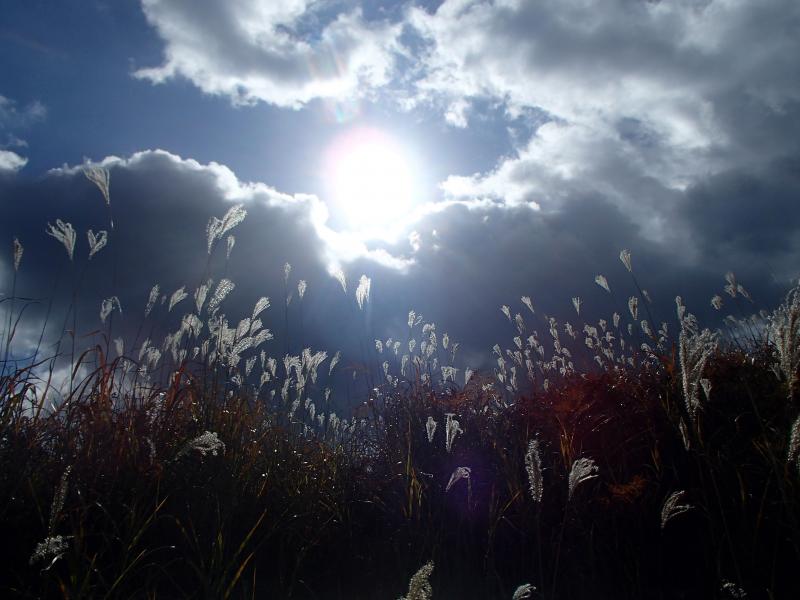 ・分岐まで来るとほぼ平坦なコースを展望台まで歩きます。陽の光を浴びて輝くススキが本当にきれいです!が、だんだん雲が出てきてしまい、シャッターチャンスが少なくなってきてしまいました。