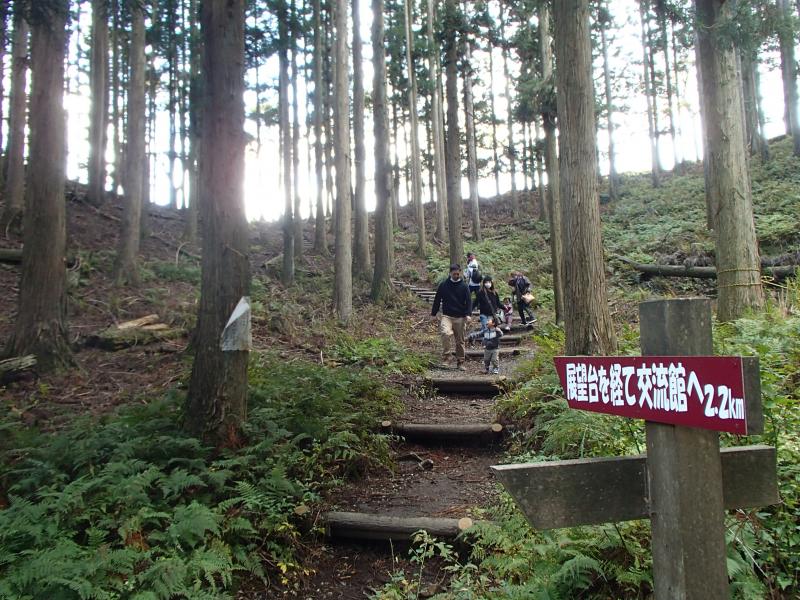 - 第二駐車場>7分>とのみね自然交流館>50分>東屋>30分>峰山高原分岐>5分>展望台>30分>川上登山口分岐>10分>とのみね自然交流館>5分>第二駐車場