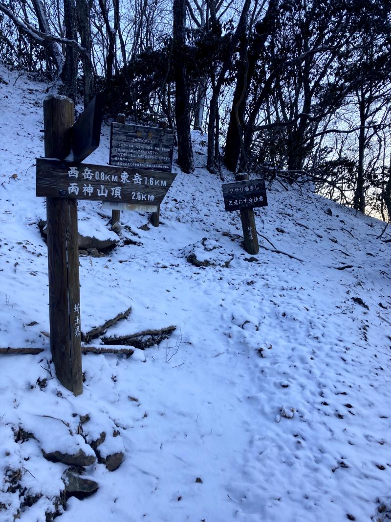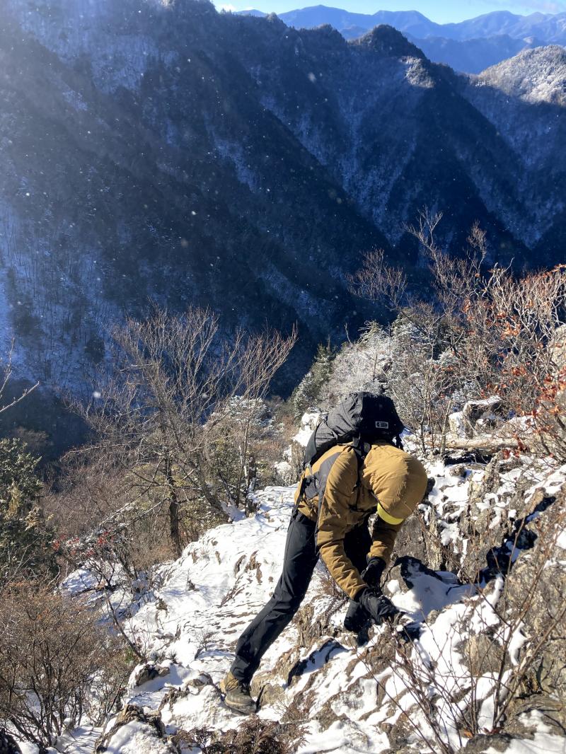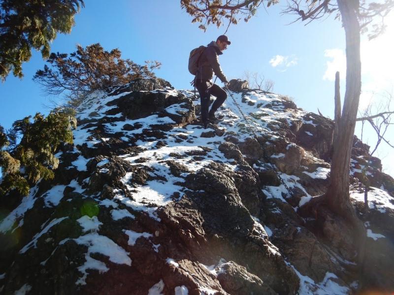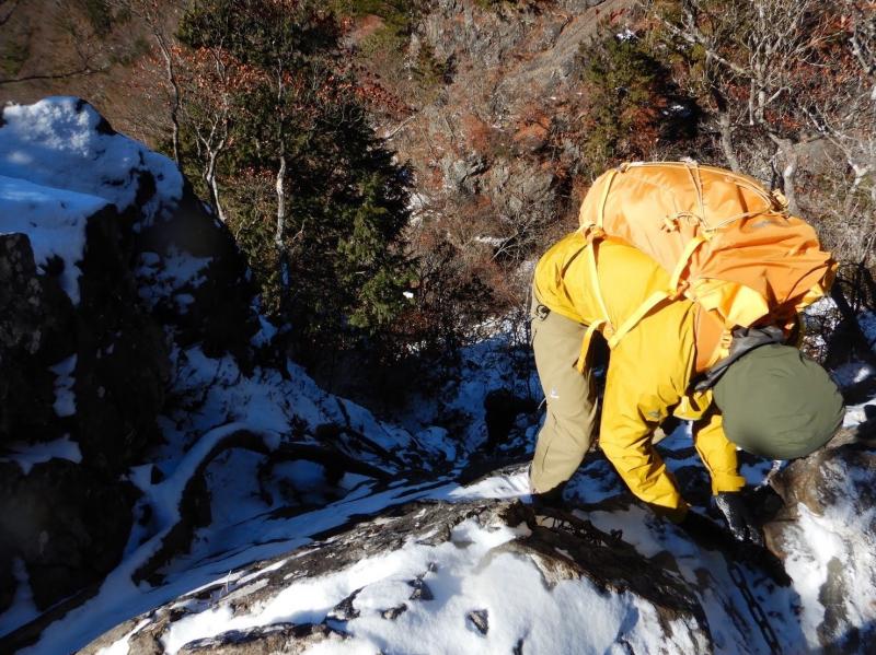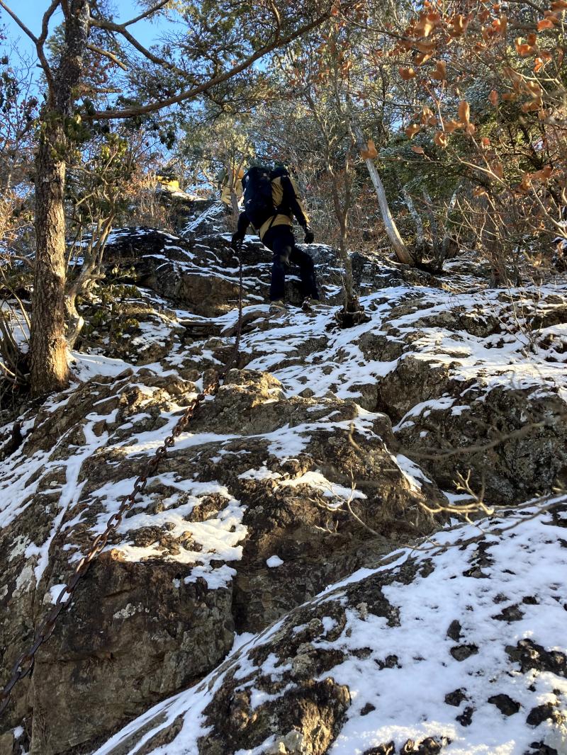 コース全体に、前日に降ったと思われる雪がありました。特に西岳から東岳の間の岩場、鎖場に雪が付いていて厳しい状況です。細かいホールドが分かりにくく、凍ってる所もあり滑りました。