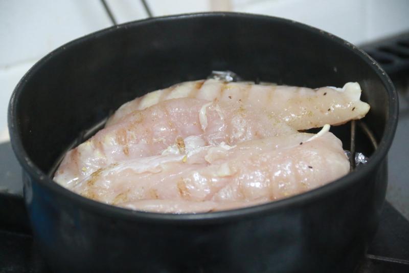 ささみの燻製は一日酒と薄い出汁醤油に浸してハーブ塩で燻製にしておきます。