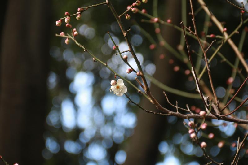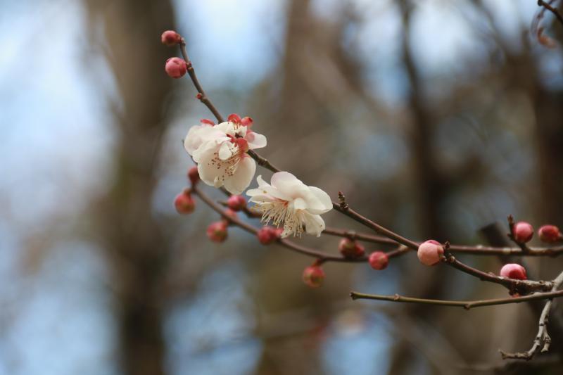 友人が来る前に下見でまず参道から登ってきました。案外参道はきつい。梅林も咲き初めです。下見終え一旦下山します。