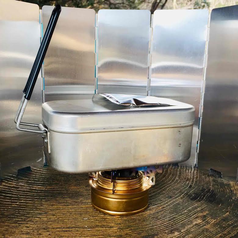 そろそろお昼の時間になったので、近くの東屋で休憩することに。メスティンにおでんを入れ、アルコールバーナーで温めます。一方、相方のYさんもメスティンで大きな肉まんを2つ蒸していました。おでんはグツグツ、肉まんはいい具合に焼き色がつきホクホクです。2人であったかご飯を満喫しました。休憩中は風が冷たくとても寒かったので、フリース、ダウン、ネックウォーマー、グローブ必須です。
