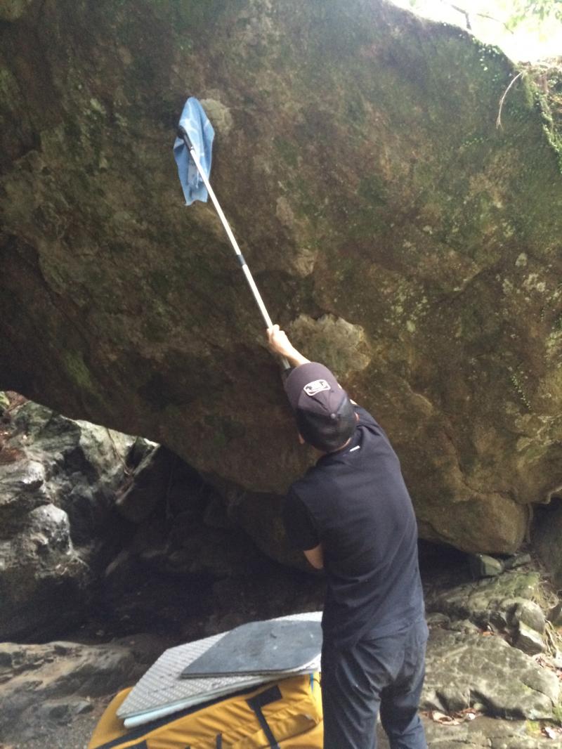 Mさんのルートを楽しく登っていくと、今回新たにつくったルートに突入。