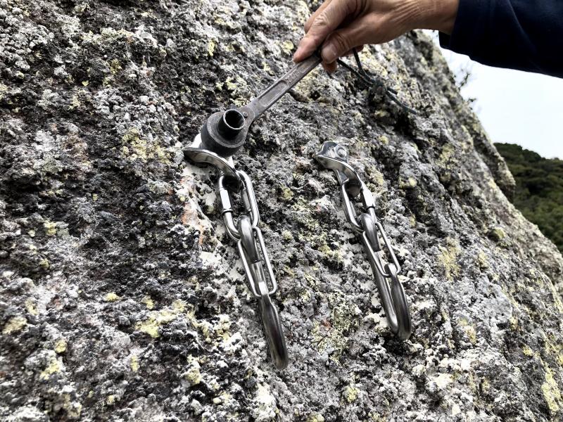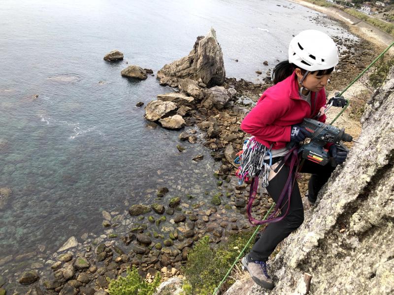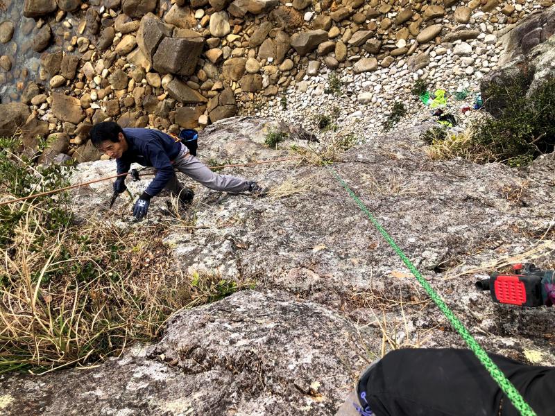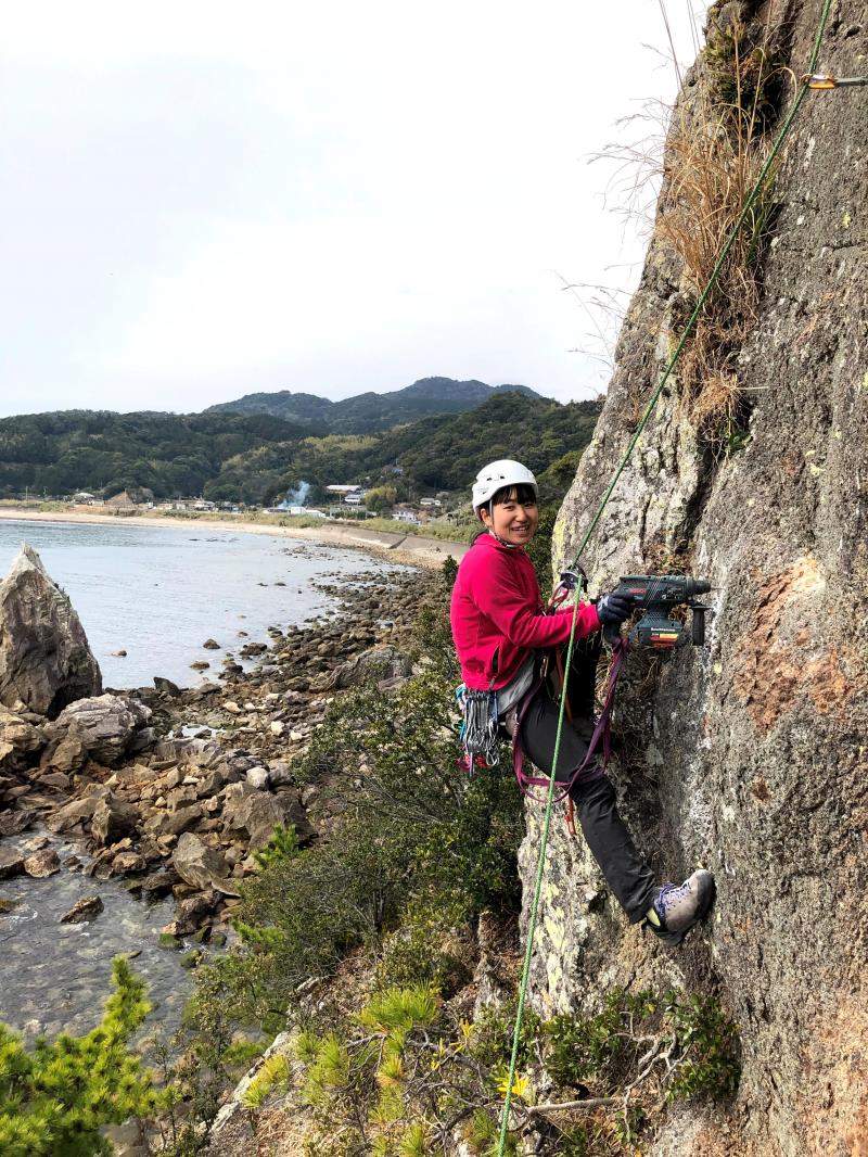岩がやわらかいので、ドリルで穴を開けるのは問題ないが、ハンマーでボルトを打ち入れる作業に時間がかかってしまう。