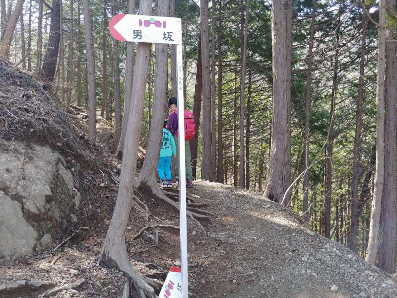 登山口からいきなりの急登をのんびりペースを整えながら歩き、男坂女坂分岐で小休止。