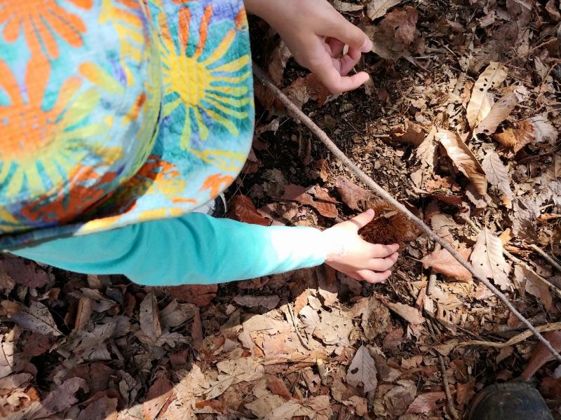 緩やかな登りを途中「キノコ」を観察したり「いがぐり」をつっついたり「ヤッホー」したりしながらゆっくり歩き男坂との合流地点手前で左を向くと大きな富士山が迎えてくれました!
