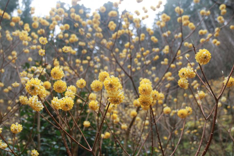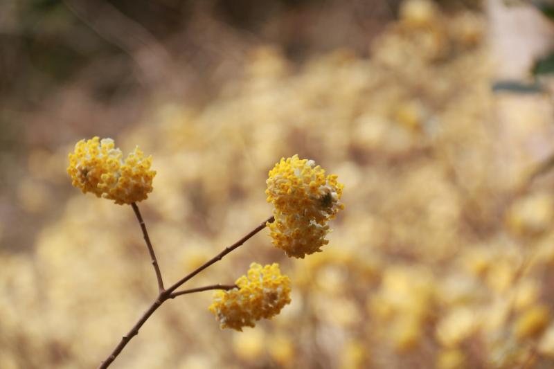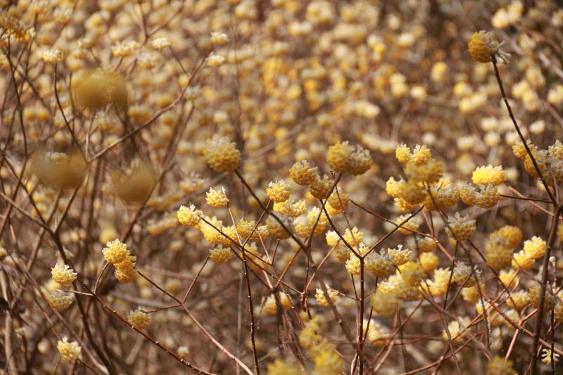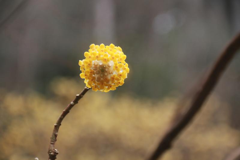 お茶をゆっくりいただき、お花を堪能致しました。鶯が鳴き、太陽の日差しでミツマタが黄金色に輝きます。天国的世界でした。自然って素晴らしい。