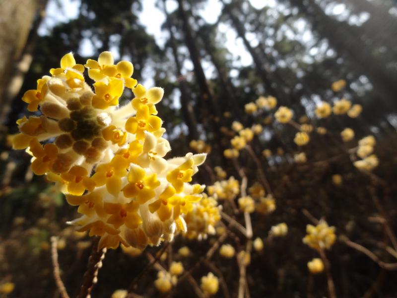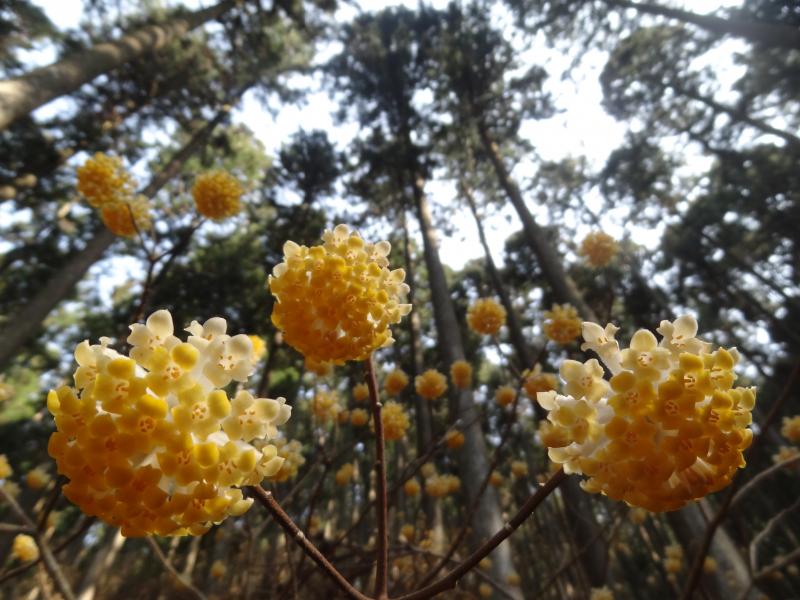ここの群生地もミツマタ林沿いに遊歩道っぽい道がありますが、作手に比べて、撮影しにくい感じです。山の中なのでなかなか日差しが当たらず、暗い感じでしたが、変わりなく、ミツマタのいい匂いが漂っていました。
