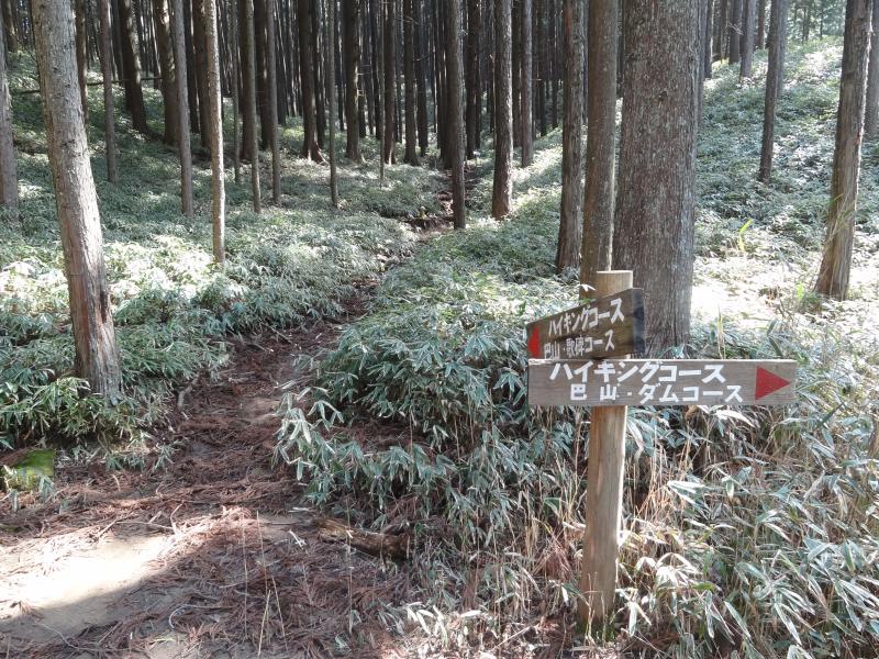 愛知県野外教育センター(3分)分岐(5分)歌碑(10分)林道(1分)大鳥居(2分)巴山(2分)大鳥居
