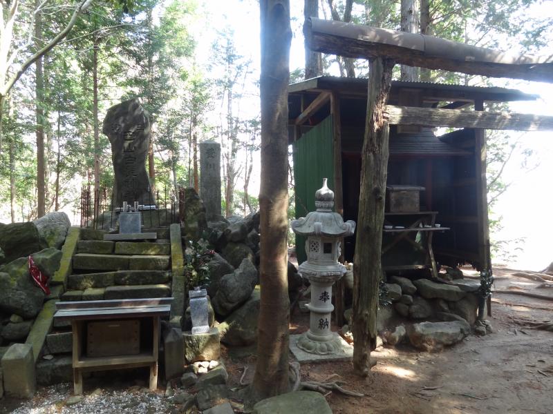 巴山は白髭神社の参道になっていて、鳥居から上がるとものの5分程度で終わってしまいますので、一般的な愛知県野外教育センターから登りました。おそらくこの施設があるので、遊歩道がきちっと整備されていて、枝道がたくさんあります。今回は歌碑コースを辿りましたが、森林浴ができて、お子様連れでも歩きやすくなっています。丘の上まであがって、白髪神社の鳥居まで下がる感じで、あくまでなだらかな道が続きます。鳥居からは神社の参道で一部、階段を登って終了です。休憩所と白髭神社がありますが、ひっそりとしています。林に隠れて、展望はありません。