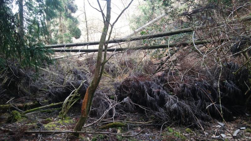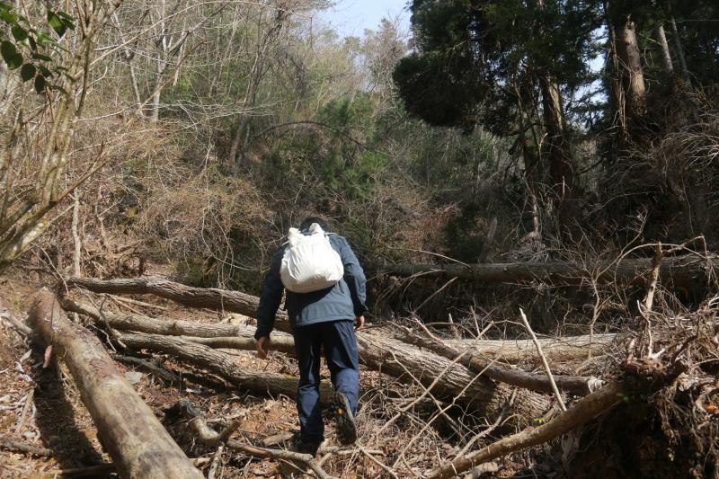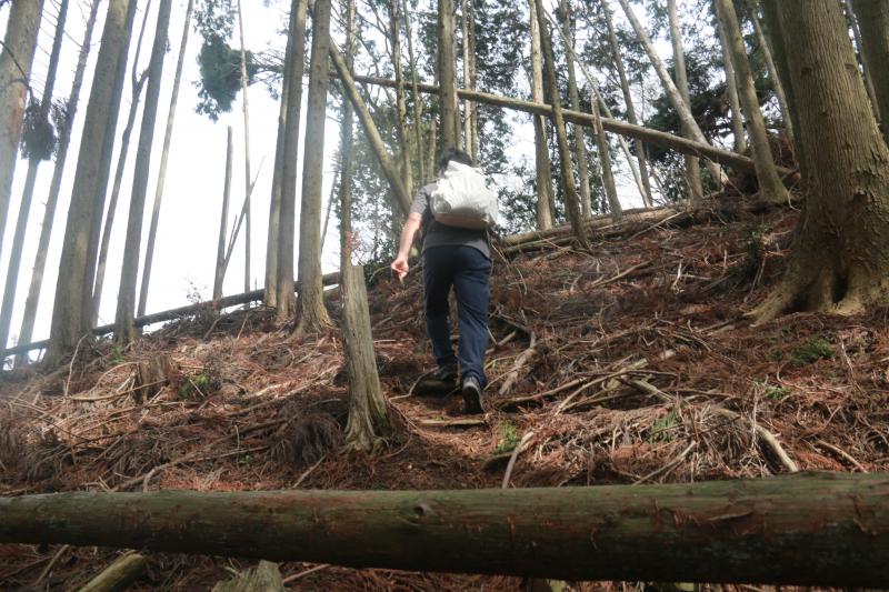 - 黒柄山までの登山道は取りつきなく、倒木を超えて林道にでました。