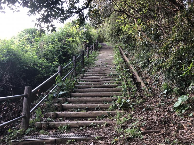 公園に入り右手は進むと階段。登るとベンチがある展望所。マリノアシティの観覧車が見える良い景色!