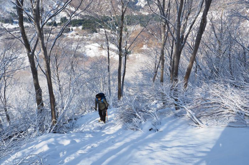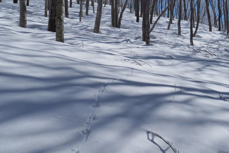 下りは軽快にそしてあっという間であまり踏み抜きもありませんでした。少し気温が上がりましたが、ザラメ雪が一歩一歩の度に波のような音を立てて心地良い♫パートナーは脚にきてたようですが、ちゃんとアミノ酸摂らないとダメですね(笑)BCスキーヤーもいたんですが山頂から少しと、ニセ巻機山から少し滑る感じのようでしたが、最後は井戸尾根を板を担いで下りてましたがなかなか大変そうですね。