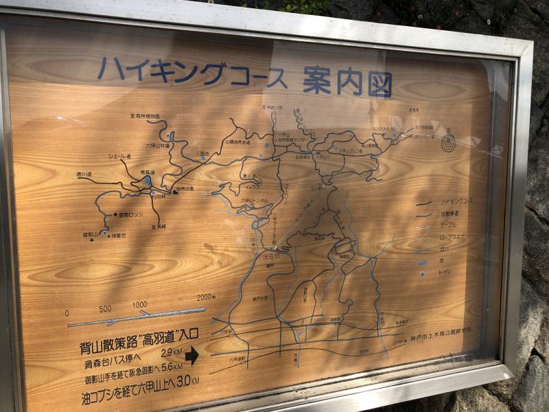 - 阪急・六甲駅からバスで六甲ケーブル下(30)第一鉄塔(15)ベンチ(30)六甲ケーブル山上駅(10)保塁岩(20)六甲サイレンスリゾート(60)穂高湖(30)掬星台~摩耶ロープウェイで下山(40)阪急・六甲駅