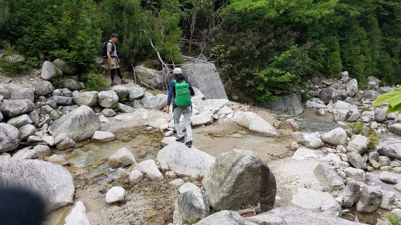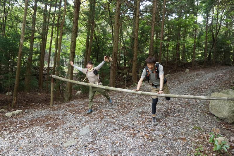 ロープや急な斜面がありますので、ストックは使わない方が良い場面もあります。