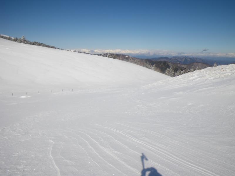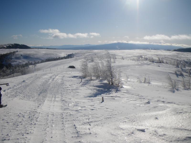 山としては最高峰の王ヶ頭(おうがとう・2034m)をはじめ、王ヶ鼻、茶臼山、牛伏山、鹿伏山、武石峰があります。真っ平らの冬の美ヶ原は格好のスノーシューエリアになり北アルプス・南アルプス・中央アルプス・八ヶ岳・浅間山などの展望は最高のロケーションですので一度は来たいと思っていました。昨年、一昨年とまれに見る雪不足でいい状態ではなかったと思いますが、今年は良さそうです。