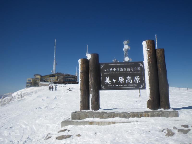 王ヶ頭には電波塔や年中営業の王ヶ頭ホテルがあり、宿泊すれば冬季でも公共交通機関で行けますが、日帰りの場合は県道178号で長和町和田側から長和町営駐車場までチェーン装着で登るか、三城牧場から登ってくる2つの方法があります。今回は山本小屋までマイカーでなんとかあげることができましたので夏と同じアプローチになりました。
