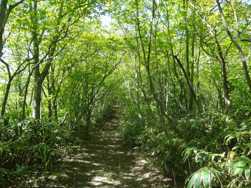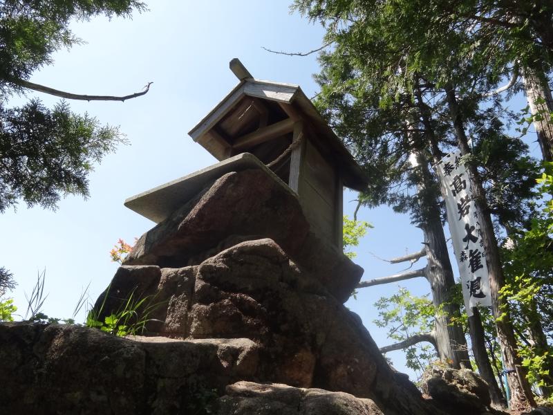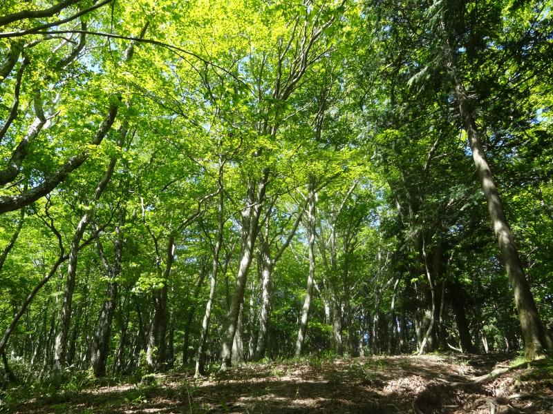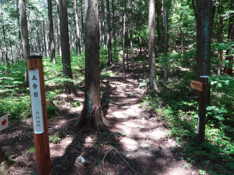 下呂温泉街からでも一般的な登山口の大洞登山口経由で登れますが、本日2座目につき、車で大林地区から広域林道を進み、五合目手前からスタートします。八合目まではジグザグジグザグ傾斜を上げていく感じですが、八合目から方向転換し、広い尾根道に変わり、最後の方は急登で山頂へ登り詰めます。途中のお助け水は冷たくて美味しい水が給水できますのでぜひ寄りましょう。八合目は平たい台地でしかも植生が変わり、この先は自然林も増え、新緑がきれいな所です。山頂からは御獄山や白山、下呂温泉街が見渡せる展望台で今まで展望がなかった分、楽しめます。このあたりからの御獄山は近いのでさすがに大きく見えます。先日と同じように歩きやすい登山道だったので下りは小走りで帰りました。下部は時期的にはヒル被害が報告されている山ですが、今回は途中からということで予想通り、お目にかかれませんでした。