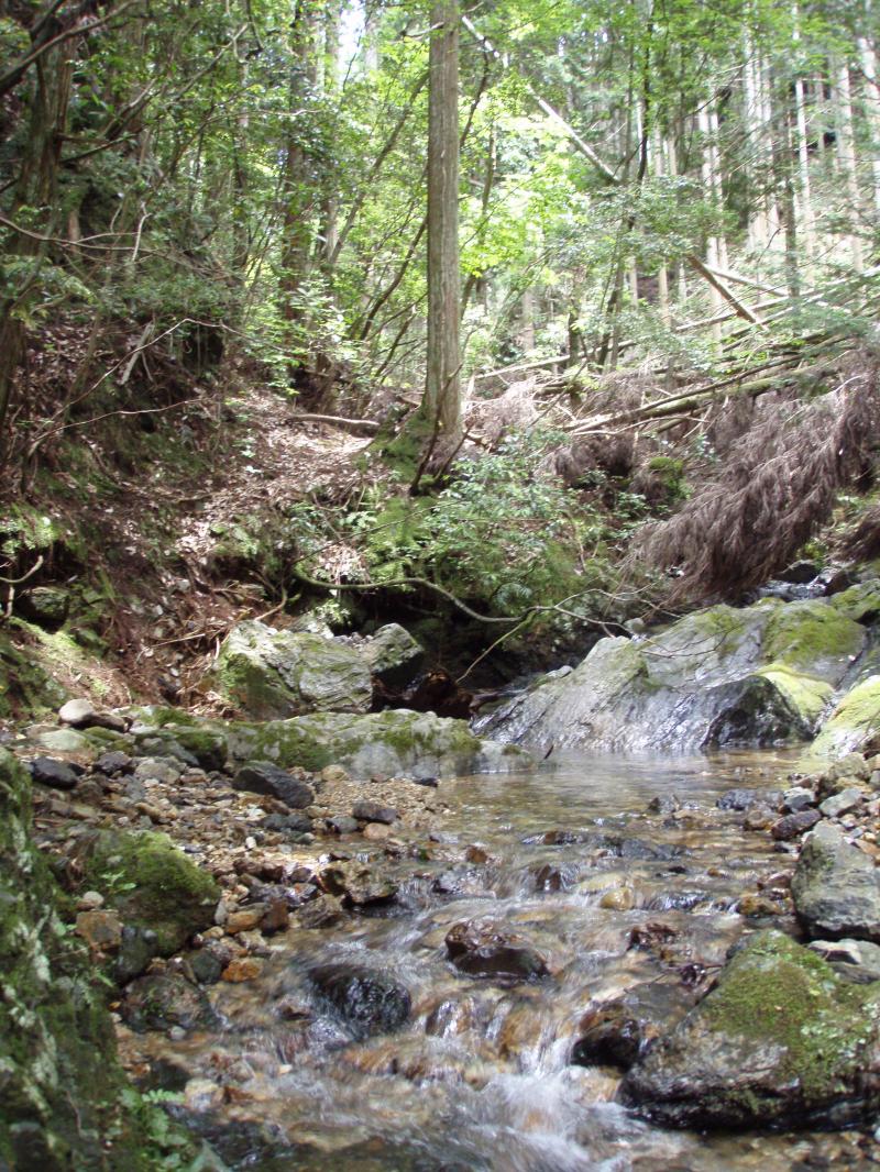 再び登山道を進んでいくと、二俣に到着。ここは左に進み、そのまま進んで遡行図に記された岩小舎へ到着。さらに進んでいくと廃林道に合流しますが、この林道は足元の水捌けが悪く、倒木も多いので、予想以上に時間を取られました。30分ほどで赤尾方面と沢ノ池への分岐に到着。ここは赤尾方面へ進み、赤い目印を追いながら30分ほど行くと、東海自然歩道の分岐に到着。帰路は「菩提の滝」を経由して中川へ向かい、バイクで帰りました。