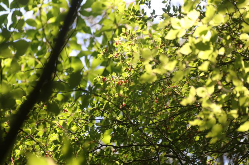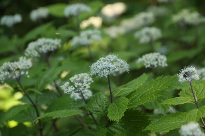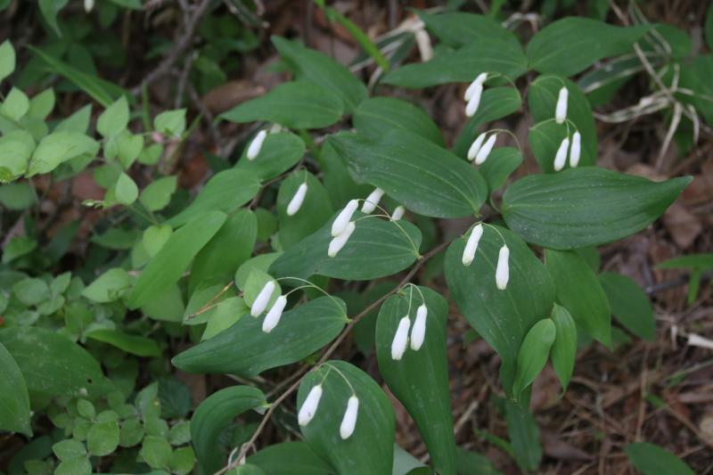 「ベニドウダン」「ナルコユリ」「モミジイチゴ」「ナワシロイチゴ]など小さな花、樹の花に会えました。「ウツギ」「ツクバネウツギ」「タニウツギ」など木の花も一杯です。