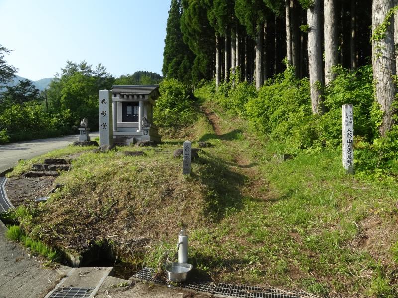 ・マイカーは国道156号上梨の村上家前から平橋を渡り、五箇山荘を越え、人形山の標識
