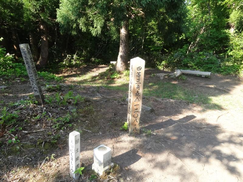 人形山山頂は三角点より大きな標識がある山頂の方が展望はよい。また少し先の平原も展望がよくゆっくりできます