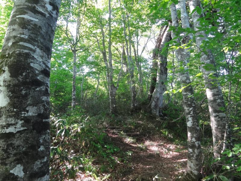 ④第一~第二休憩所はブナ林のやや急坂。第二休憩所に立派なドウダンツツジがあります