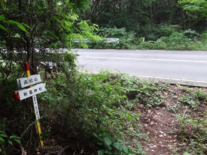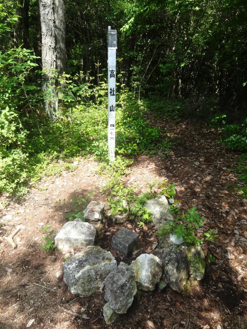 - 登山口(2分)高社神社参道(12分)高社神社(5分)愛宕神社(1分)反射板(6分)高社山(20分)秋葉神社(4分)県道(2分)登山口