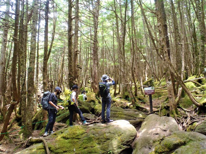 雨に濡れた苔(コケ)を目的に北八が岳に位置する、