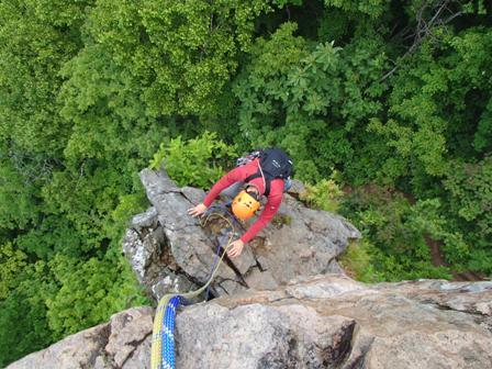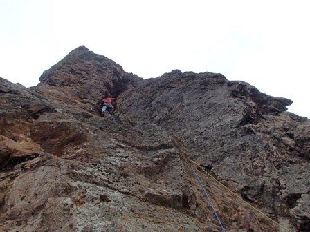 この日のメイン。6ピッチのロングルート。(切り方によっては5ピッチでも可能)石渡さんは高度感のある4ピッチ目のリードが面白かったよう。カムを使って快適に登る。