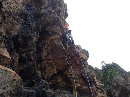3級ルートでまずは足慣らし、お互いロープを結ぶのは初めてなのでまずは色々と確認。