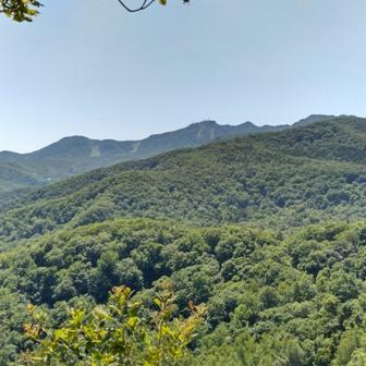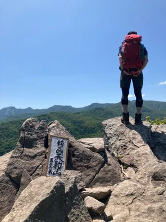 このあたりから振り返ると綺麗に海も見れて展望も抜群。最後は岩壁を回り込むように登り頂上につきました。この日は登山者も少なく、静かな頂上を堪能。下りも含めて2時間半ほどで手軽に楽しめる山としてお勧めです。