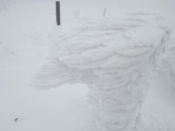 頂上では、えびの尻尾も樹氷が立派に成長しており、見事な白銀世界が広がっていました。
