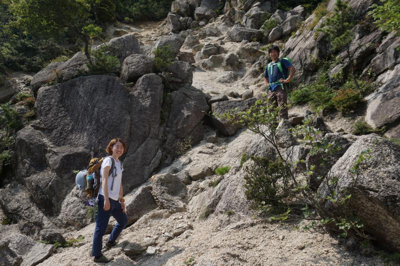 アプローチはやや長く、30分程で藤内小屋。吹き出る汗を収めるのに小休止の後、急登20分で砦岩に到着です。