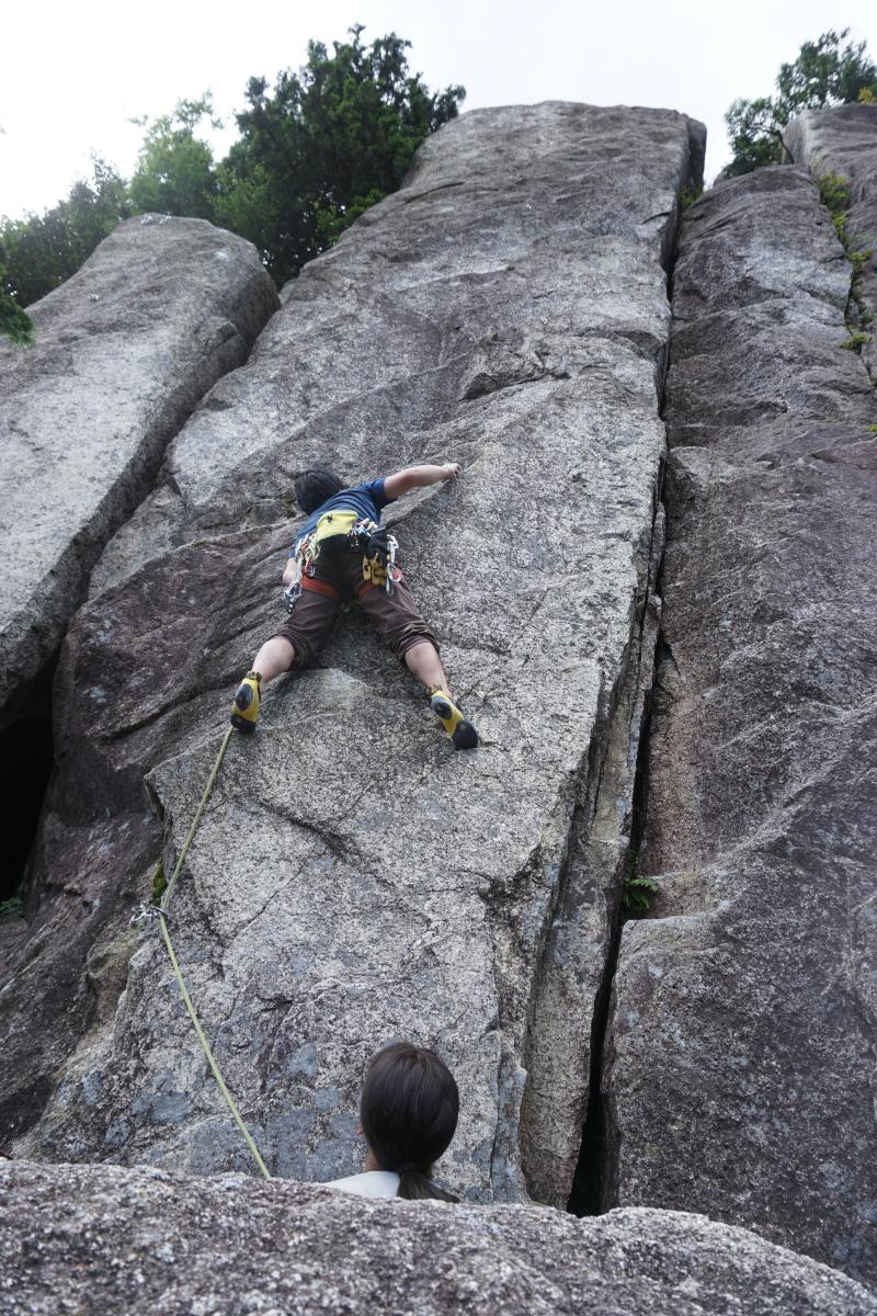 外岩で初のスラブ課題。核心は結晶ほどに足をかけるのですがどうしても乗らない。左手はつかめない。