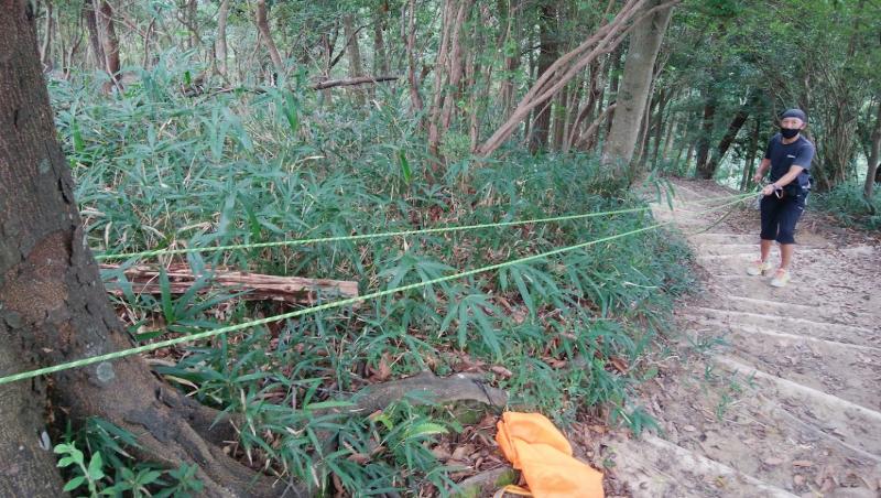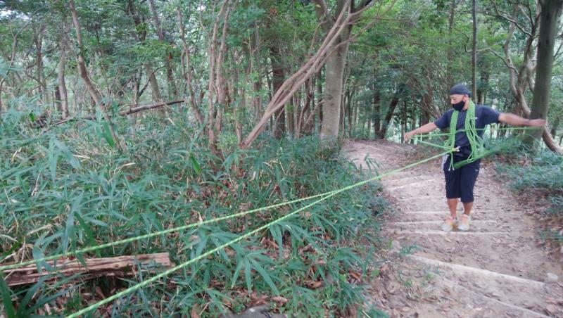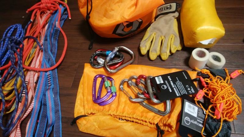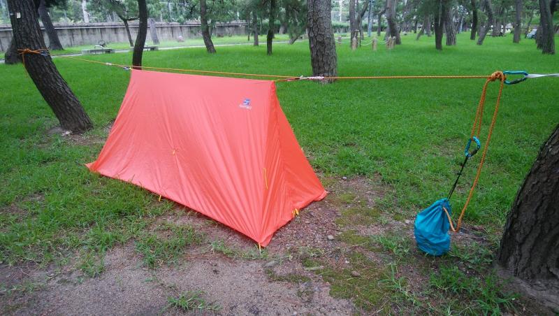 家に帰って近くの公園でロープによるツエルトをたてる練習もしました。