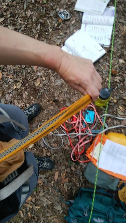 30Mロープでのトラバースの始点、中間点、終了点づくり。