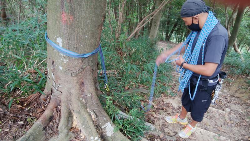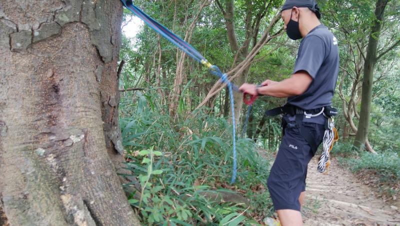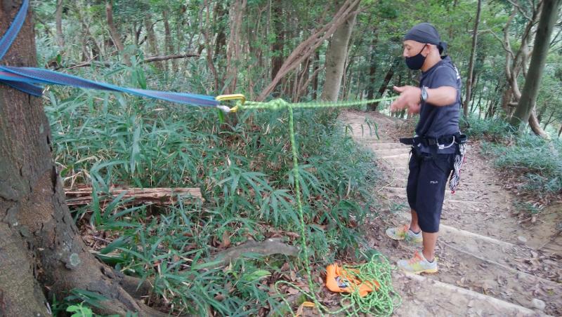 「レスキューワーク」の基本のロープワークを岩主将に付き合っていただきました。